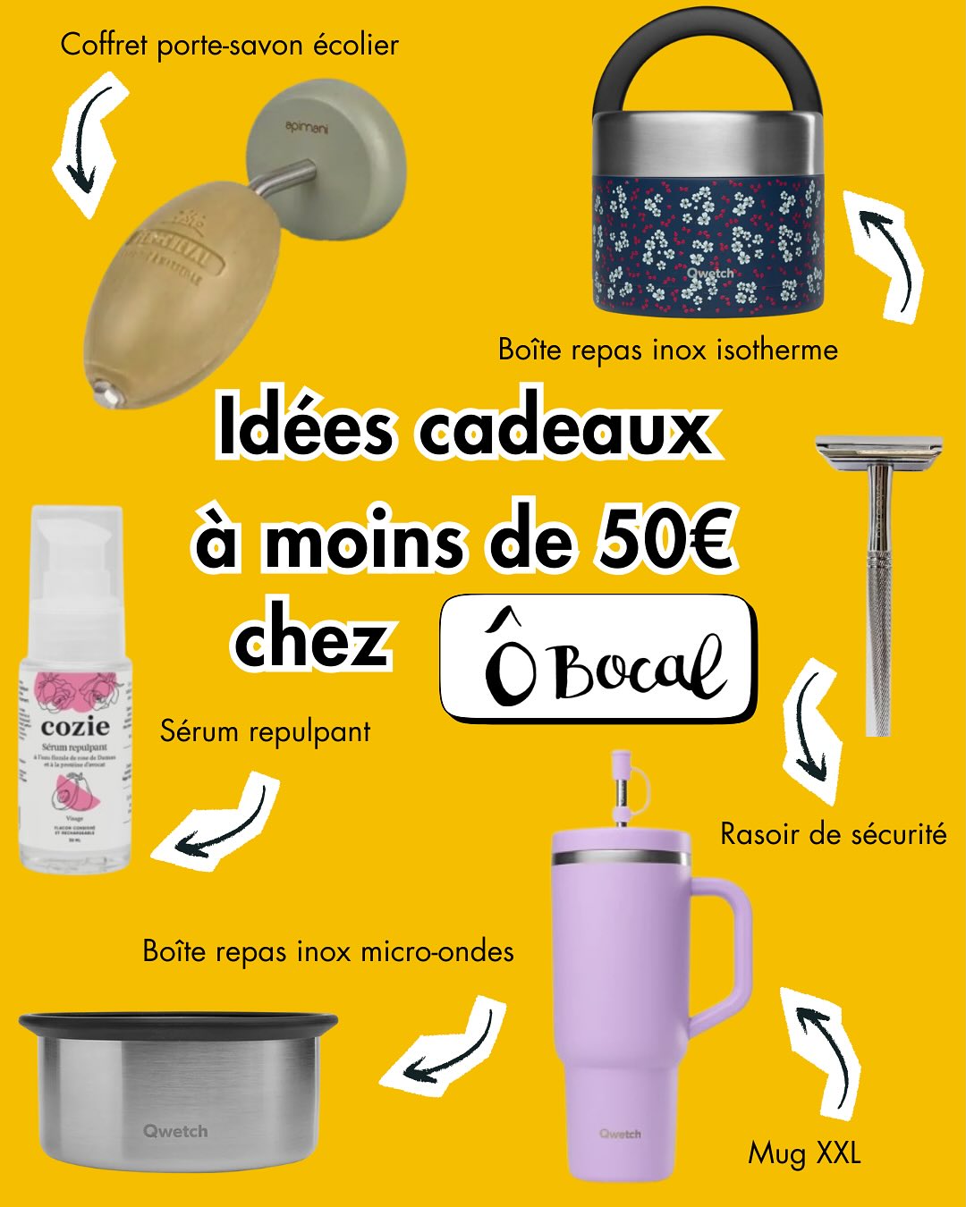Un sérum repulpant pour le visage, un coffret porte savon écolier en bois et savon de Marseille, un rasoir en inox, ou encore une boite repas isotherme pour manger chaud !