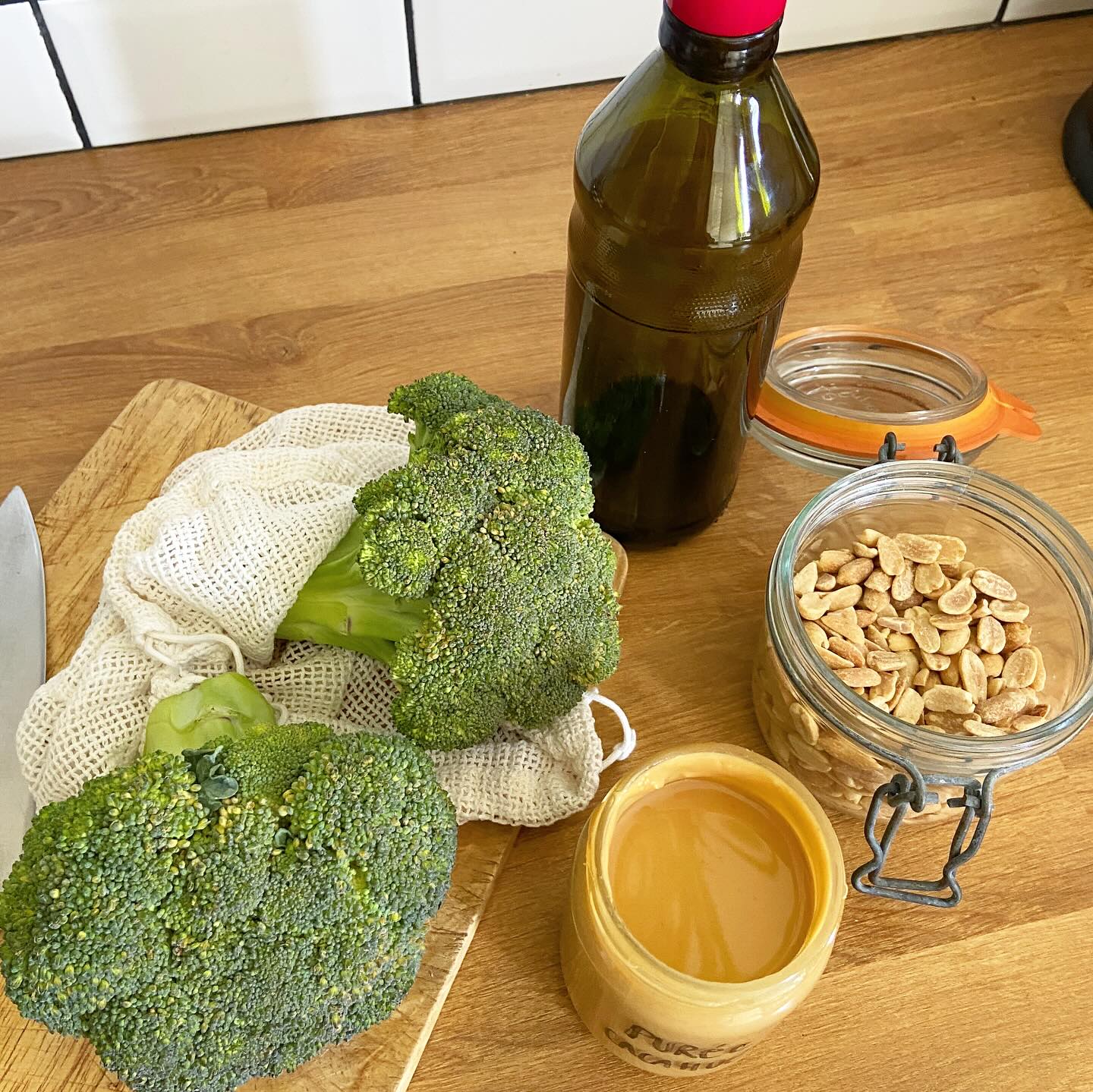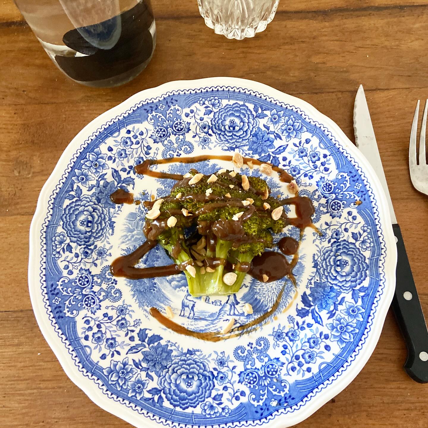 Bonjour l'automne ! Le mois dernier on a goûté une entrée végé très simple et très gourmande : un brocoli rôti avec une sauce à la cacahuète. Miam c'était un vrai régal ! Alors on l'a refaite pour vous et on vous partage cette recette !