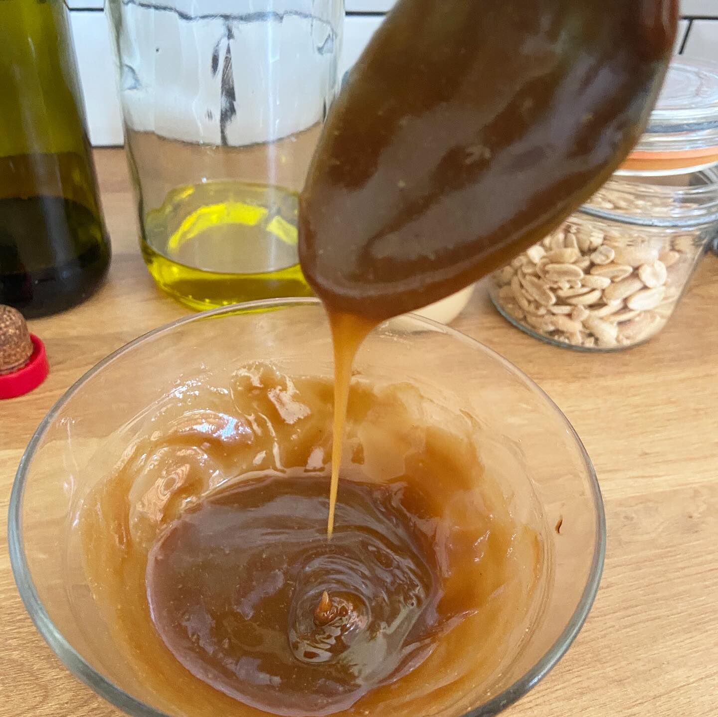 Rien de plus simple, dans un bol mélangez votre purée de cacahuète et votre sauce soja salée. Vous allez obtenir une pâte avec une consistance foncée et un peu épaisse. Pour pouvoir recouvrir comme il faut vos brocolis rôtis, délayer votre sauce avec de l'huile de sésame vierge. Afin qu'elle soit plus liquide et plus fluide à appliquer, versez au fur et à mesure votre huile jusqu'à avoir une belle texture de sauce ! Pas trop liquide mais pas trop épaisse non plus :)