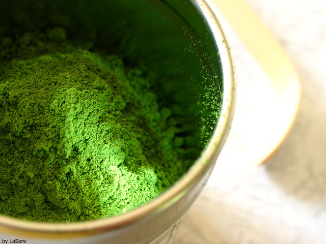 – Mélangez la pâte avec le lait à l’aide de votre fouet en bambou jusqu’à obtenir un liquide onctueux et vert clair.